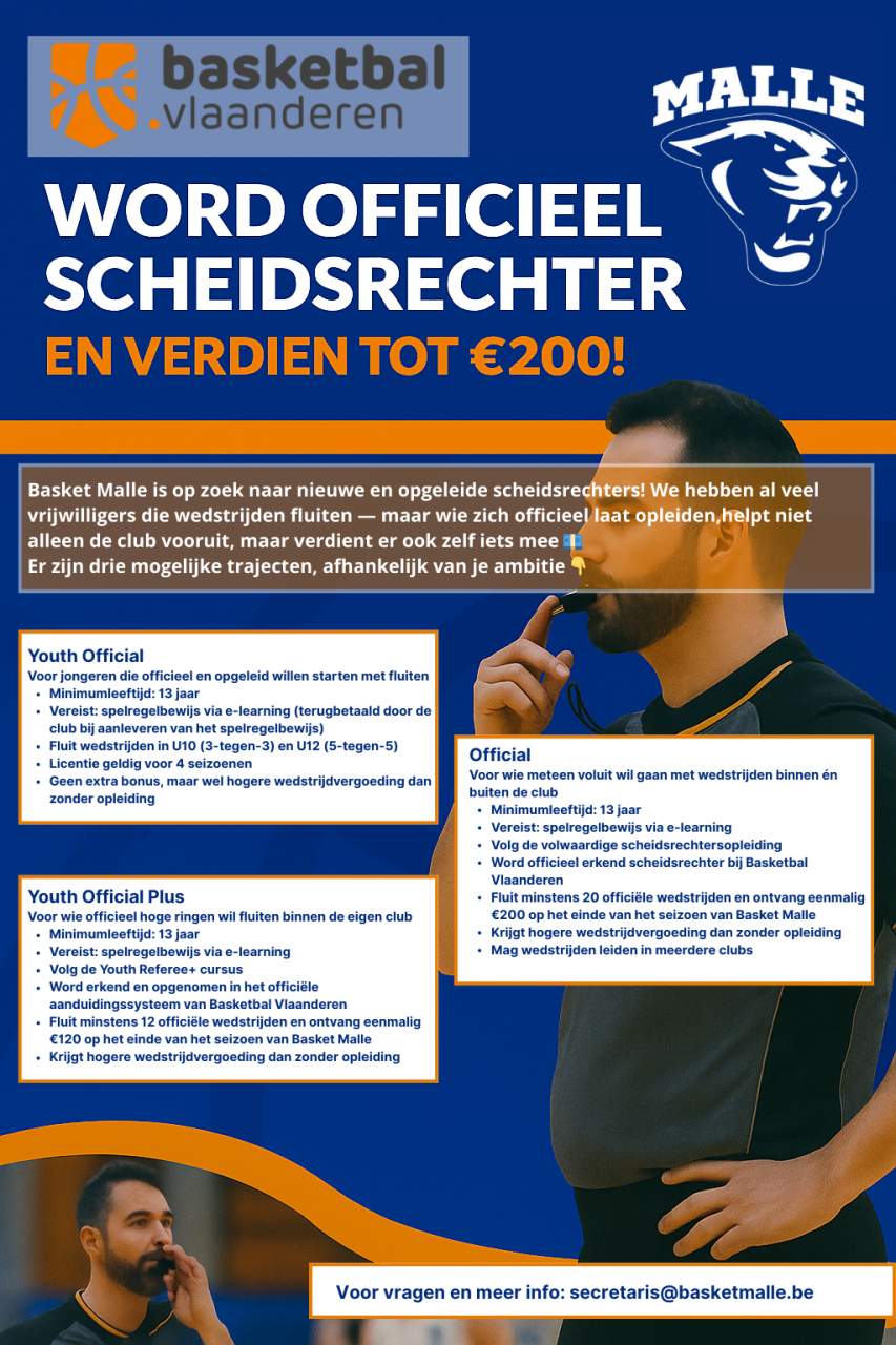 Basket Malle is op zoek naar nieuwe en opgeleide scheidsrechters!